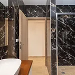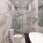 Każdą łazienkę zaopatrzono w kabinę prysznicową walk-in i wannę.